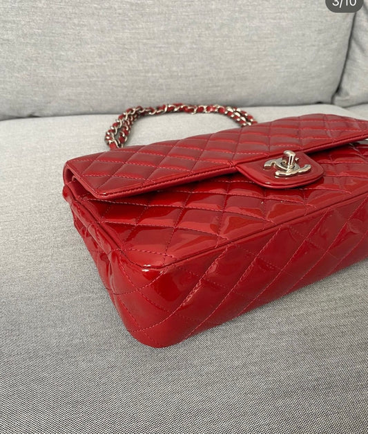 Chanel classic rossa in patent misura media