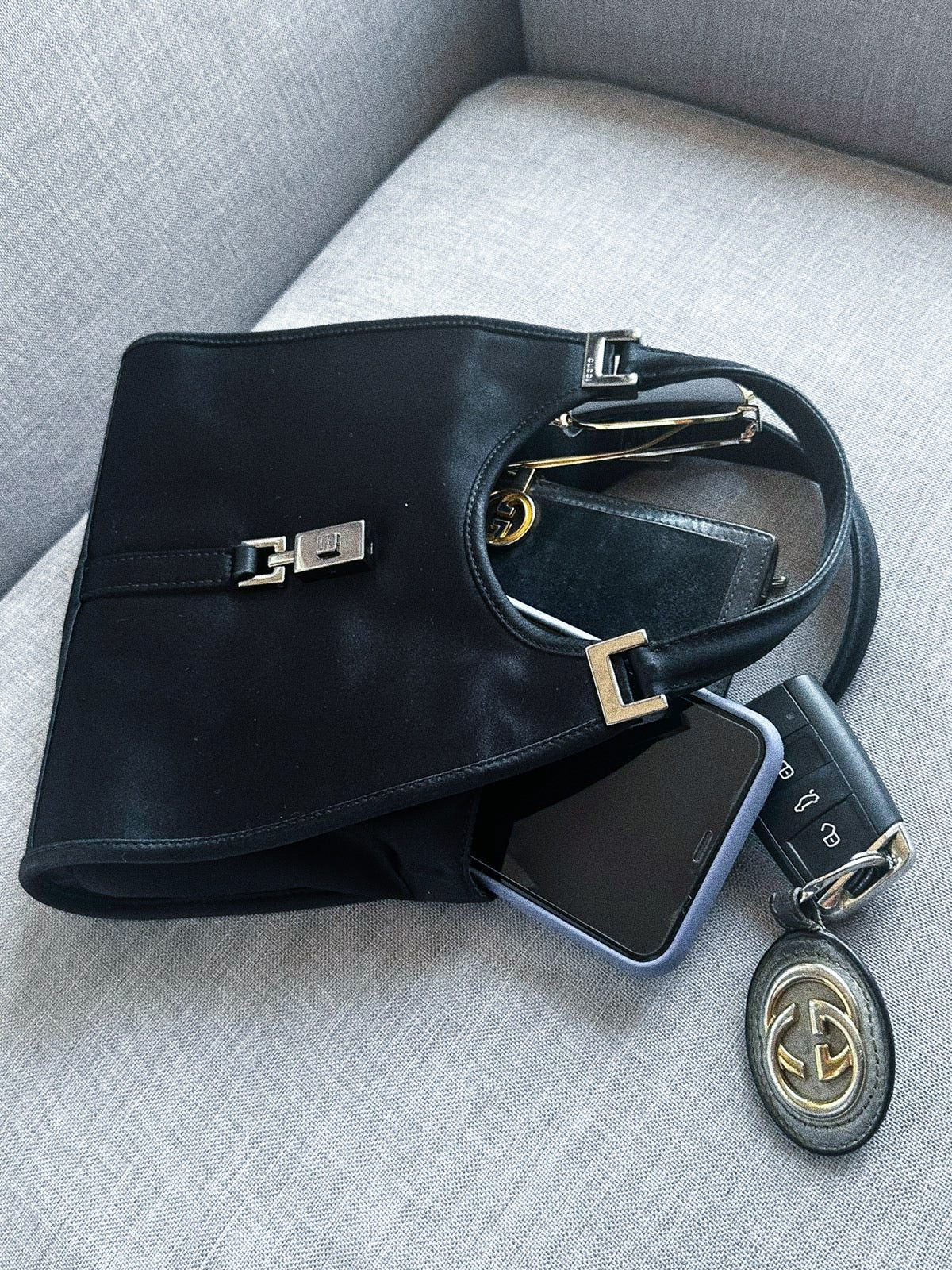 Vintage Gucci Bardot in Black Satin